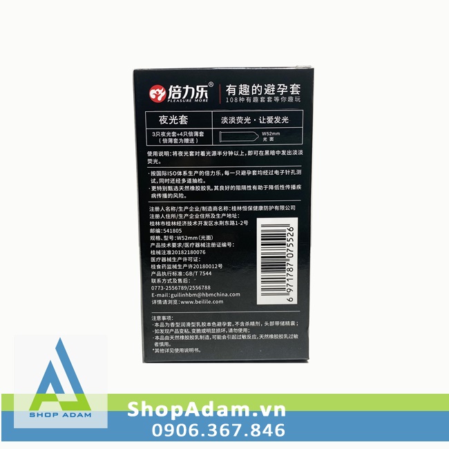 - Chủng loại: bao cao su phát sáng.