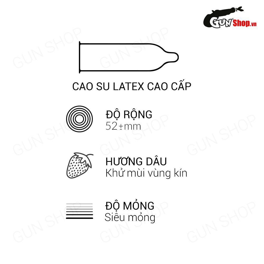 Cuối cùng, bao cao su mùi hương dâu ngọt ngào chính là nhân tố khiến nhiều chị em mê đắm siêu phẩm này. Sản phẩm giúp người dùng che giấu đi mùi cơ thể, đồng thời khiến không khí cuộc “yêu” thêm phần kích thích, mang lại khoái cảm thăng hoa hơn.