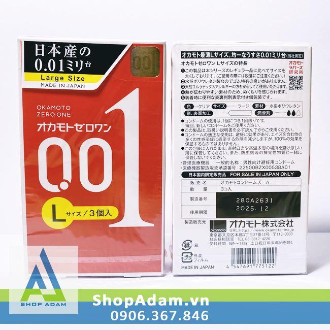 Bao cao su 0.01 Size lớn Okamoto Zero One Large là loại bao cao su siêu mỏng mang lại cảm giác chân thật cho người dùng, ngoài ra sản phẩm còn có tính năng truyền nhiệt nhanh giúp bạn cảm nhận được hơi ấm cơ thể tạo cho cuộc yêu trở nên nồng cháy hơn.