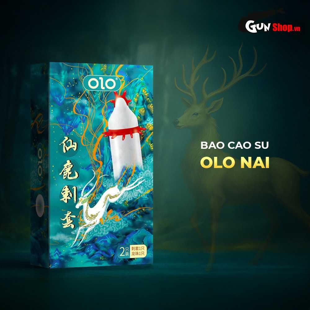 Hộp sản phẩm bao cao su OLO Nai được đóng gói với hai thành phần tách biệt, mỗi thứ đảm nhận một vai trò riêng trong việc nâng cấp trải nghiệm tình dục:
