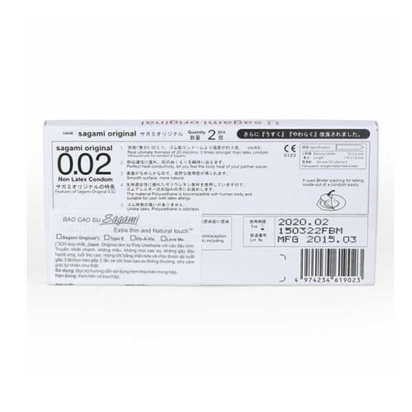 Bao cao su Nhật với độ mỏng chỉ 0.02mm gần như là bao cao su mỏng nhất thế giới được sản xuất bởi công nghệ độc quyền của Sagami. Theo đánh giá của nhiều người, dòng Original 0.02mm mang đến cảm giác tương tự với dòng 0.01 điều đó chứng tỏ sản phẩm sở hữu nhiều ưu điểm nổi trội như: