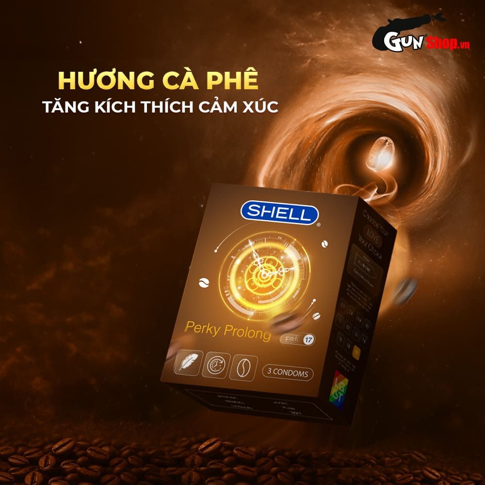 Bao cao su Shell Perky Prolong - Hộp 3 cái hương cà phê kích thích