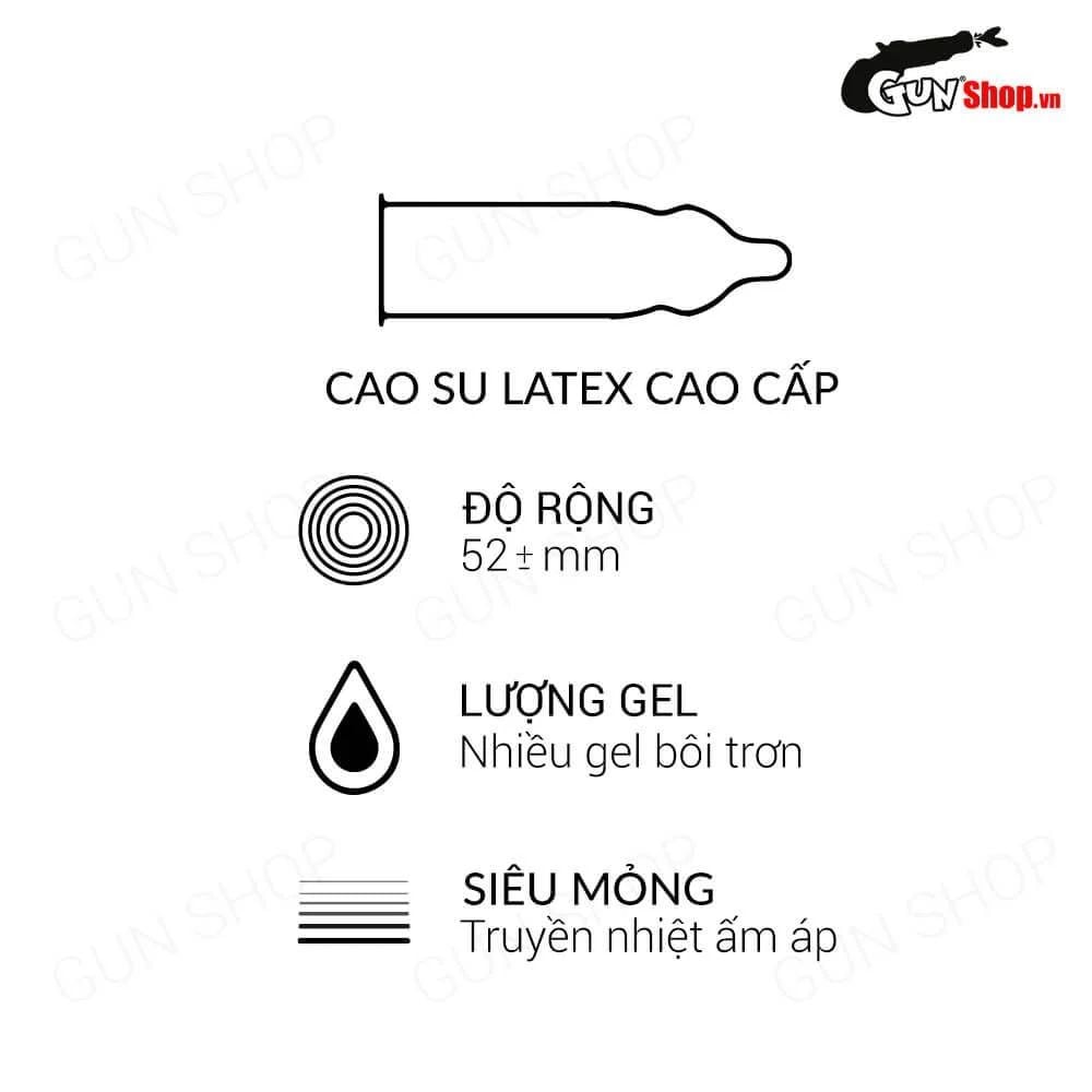 Trong đó, bao cao su siêu mỏng SO Ultrathin được nhiều quý ông Việt lựa chọn mỗi lần “ân ái” cùng người thương. Sản phẩm mang đến cho người dùng những trải nghiệm chân thực khi quan hệ cùng nàng.