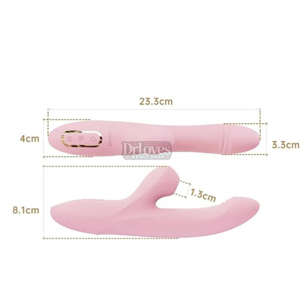 Dương vật giả Kisstoy Katy Max với thiết kế tinh xảo và tiện lợi. Vỏ máy được làm từ silicon và ABS cao cấp, không chỉ an toàn cho da mà còn thân thiện với môi trường. Chất liệu mềm mại, êm ái, kết hợp với hình dạng thiết kế tạo cảm giác thoải mái, tuyệt vời cho trải nghiệm sử dụng. Đầu máy kép, với khả năng xoay và rung, cho phép kích thích đồng thời cả bên trong và bên ngoài, đáp ứng mọi nhu cầu và sở thích. Nút điều khiển riêng biệt giúp người dùng dễ dàng điều chỉnh các chế độ rung, xoay, và hút, mang lại sự linh hoạt và tùy biến tối ưu. Màu sắc hồng quyến rũ, kết hợp với thiết kế hiện đại, đơn giản nhưng đầy phong cách, tạo nên vẻ đẹp tinh tế và thu hút.
